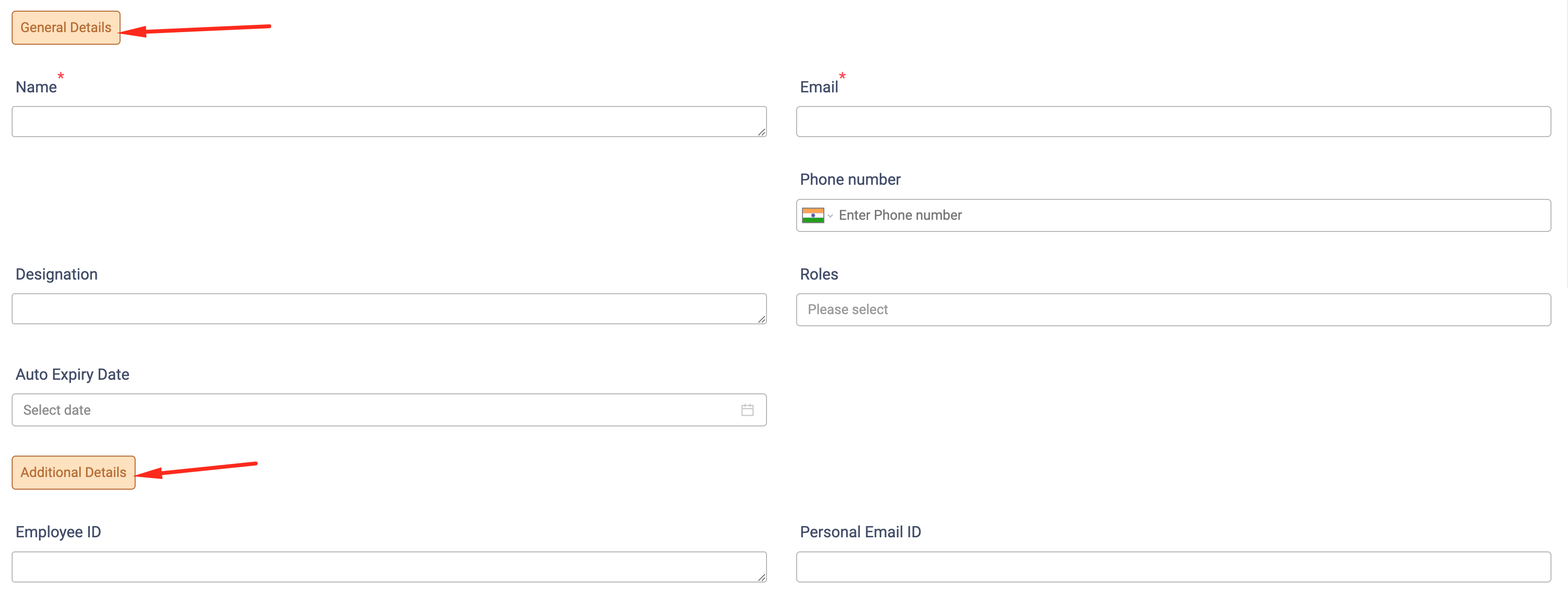 10. Once saved, the default fields of the user list will be grouped under the Label General Details and the newly added fields will be displayed under the Label Additional Details.