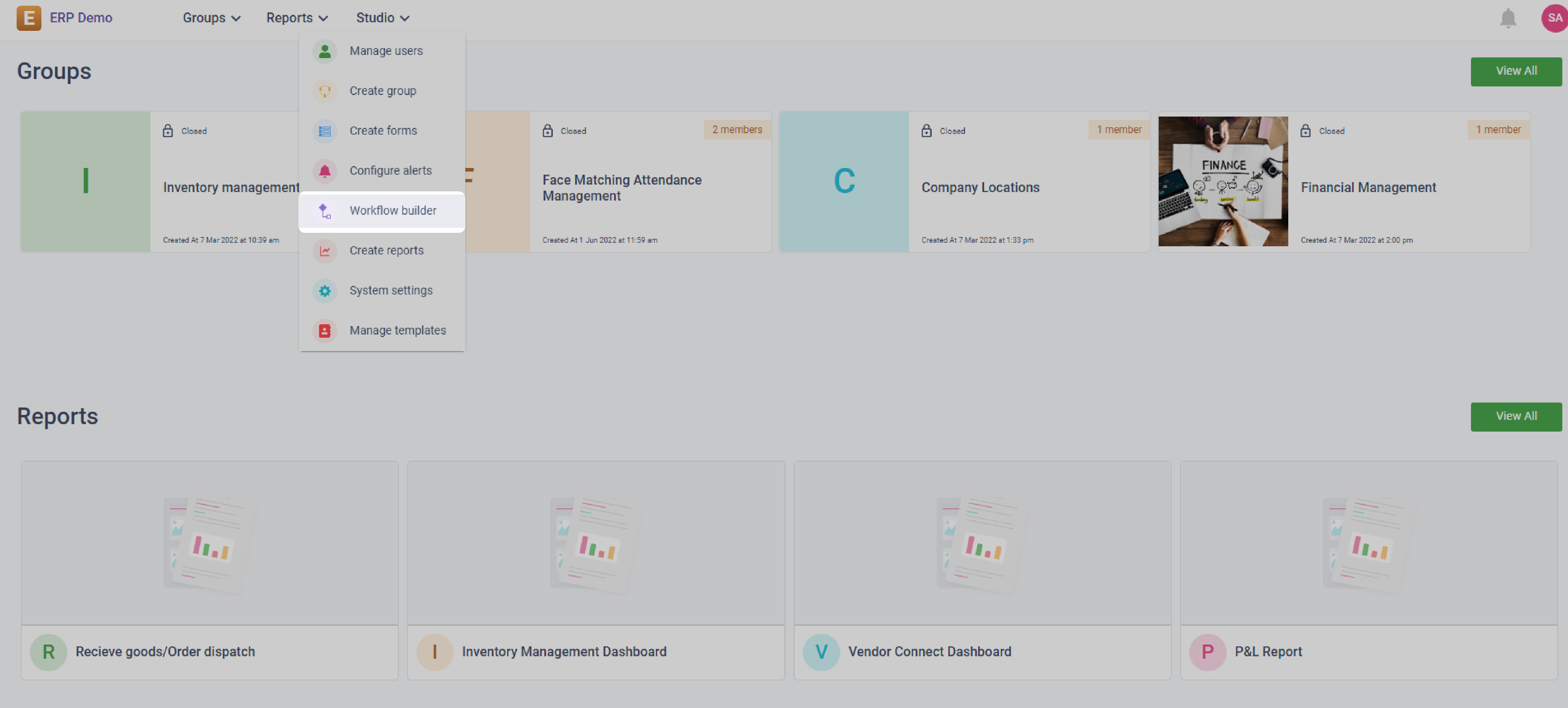 1\.    From the **Studio** dropdown menu, select **Workflow builder**.